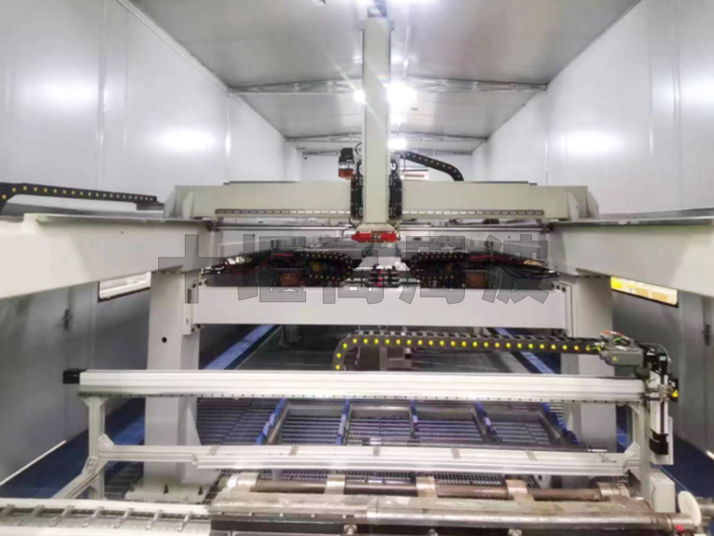 工作方式:50多種不同規(guī)格的鉆桿混線生產(chǎn),自動(dòng)識(shí)別零件的長度和直徑后送入對應(yīng)的退火工位,相對于爐子整體退火大大節(jié)約能耗,提升效率。