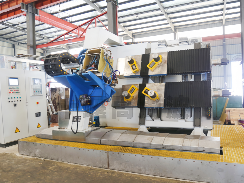 工作方式:斜立式結(jié)構(gòu),橫梁上掛載2組感應(yīng)器,感應(yīng)器伺服移動(dòng)定位,感應(yīng)器自動(dòng)找工件間隙,淬火時(shí)自動(dòng)跟蹤;工件四點(diǎn)式定位,自定心裝夾,工作臺(tái)伺服旋轉(zhuǎn)、無(wú)間隙分度。